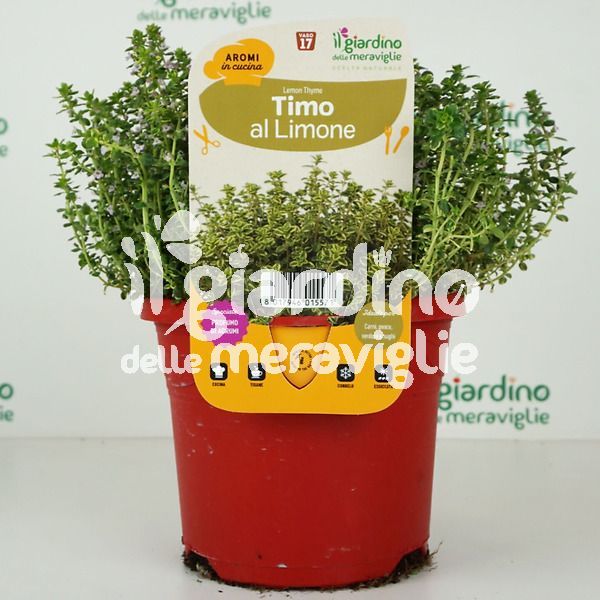 Il timo al limone è una pianta aromatica dall'odore intenso di limone e dal sapore inconfondibile, adatto per condire carni, arrosti, pesce. Il timo al limone forma dei cespi compatti a sfera di colore verde e giallo oro, ricco di rami che tendono a lignificarsi rapidamente. Produce fiori profumatissimi di colore bianco dalla primavera all'estate. E' tipico delle zone mediterranee in ambienti aridi, poveri e sassosi. Vengono raccolte le foglie per essere consumate fresche o per avviare il processo di essiccazione e quindi di conservazione in barattoli di vetro.